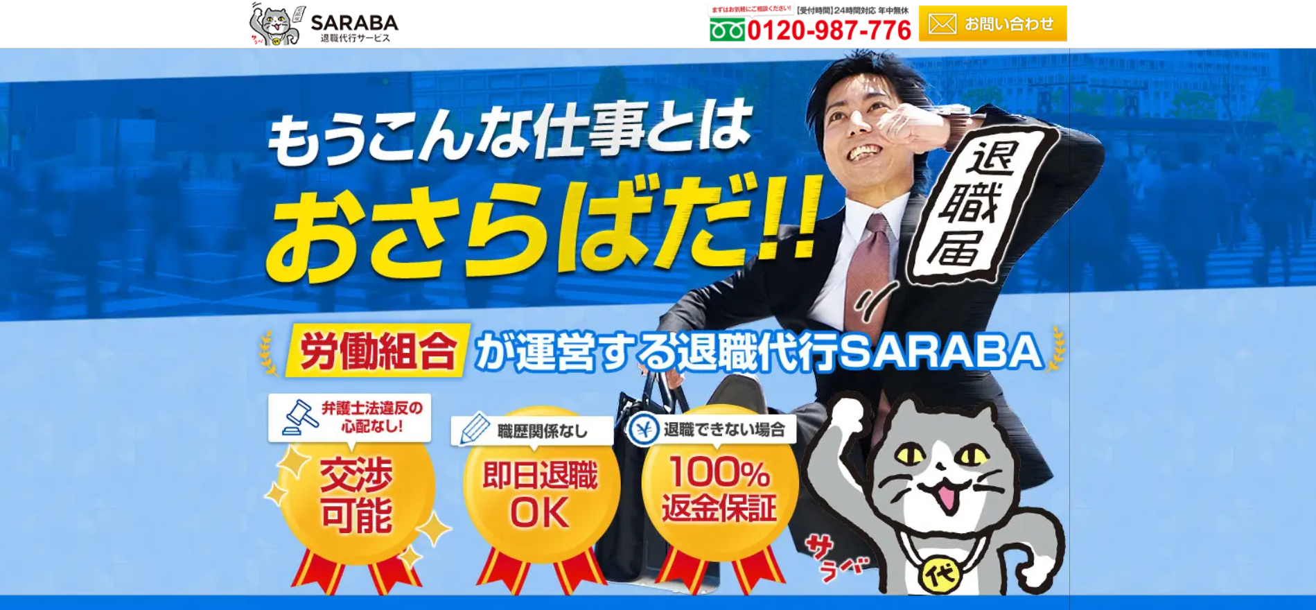 退職代行SARABAは、労働組合が運営している24時間365日対応可能の退職代行サービスです。