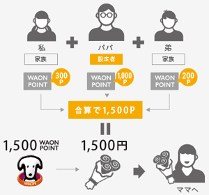 今まではそれぞれのポイントカードでバラバラに貯め、それぞれのカードで貯まった分だけを利用するしかできませんでしたが、新しいWAON POINTであればシェアすることで、ポイントを複数人でザクザク貯めて一気に使用することができます。